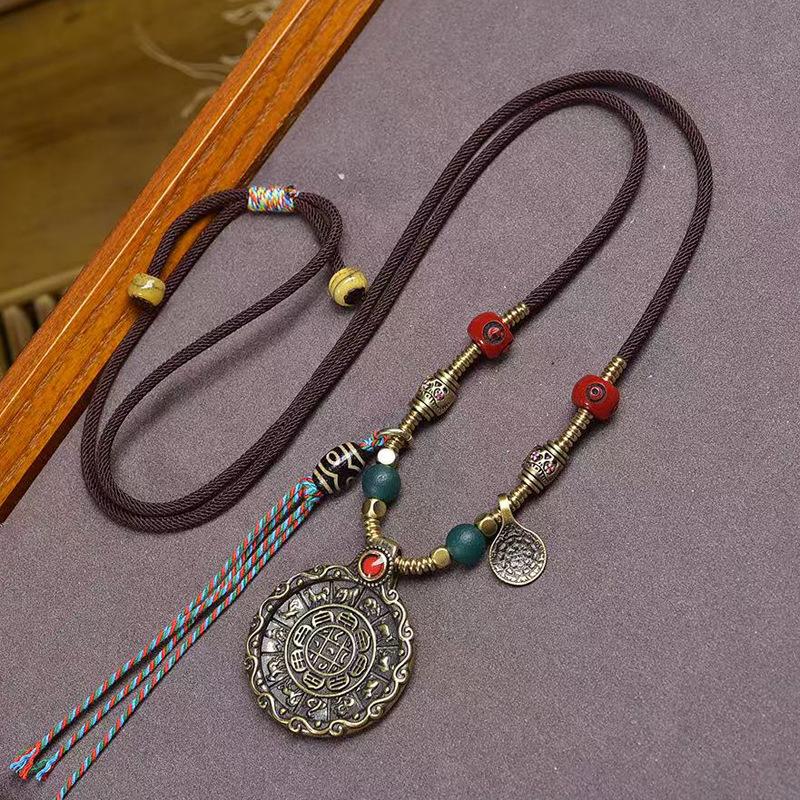 Hand – Woven Adjustable Necklace with Nine – Palace Eight – Trigrams Pendant