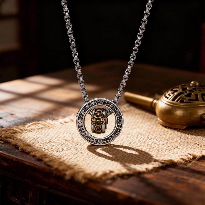 Double – Ring Pixiu Men’s Necklace