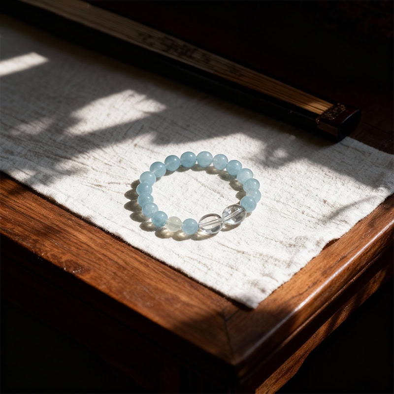 Aquamarine, Green Auralite & Prehnite Bracelet for Stress Relief