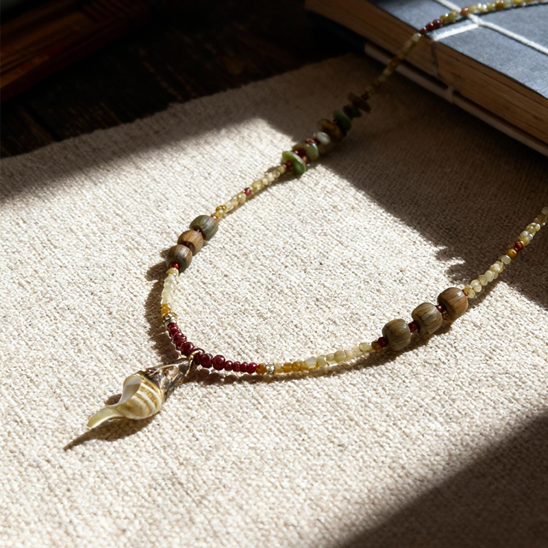 • playdate classical green shell plant Garnet guajacwood retro natural necklace